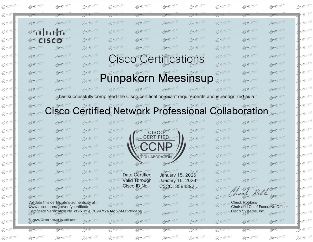 February 5, 2026in Uncategorized0by netbright117 📌Update Certified : Cisco📌 ทีม Net Bright ได้รับ Certificate ล่าสุด– Cisco Certified Network Professional Collaboration (CCNP-Level)– Cisco Certified Network Professional Enterprise (CCNP-Level) ปรึกษาทีมงานผู้เชี่ยวชาญจาก Net Bright Co.,Ltd. ทักเลยค่า สอบถามโซลูชั่นเพิ่มเติม : Website: https://www.netbright.co.th/ E-mail : sales@netbright.co.th Tel : +662643-8810-11 Mobile : +6697-039-3161 Line : @netbright Facebook : @netbright.th Instagram : netbright.th Youtube Channel : Net Bright Linkedin : netbright-th